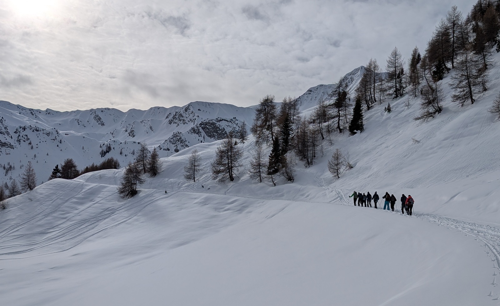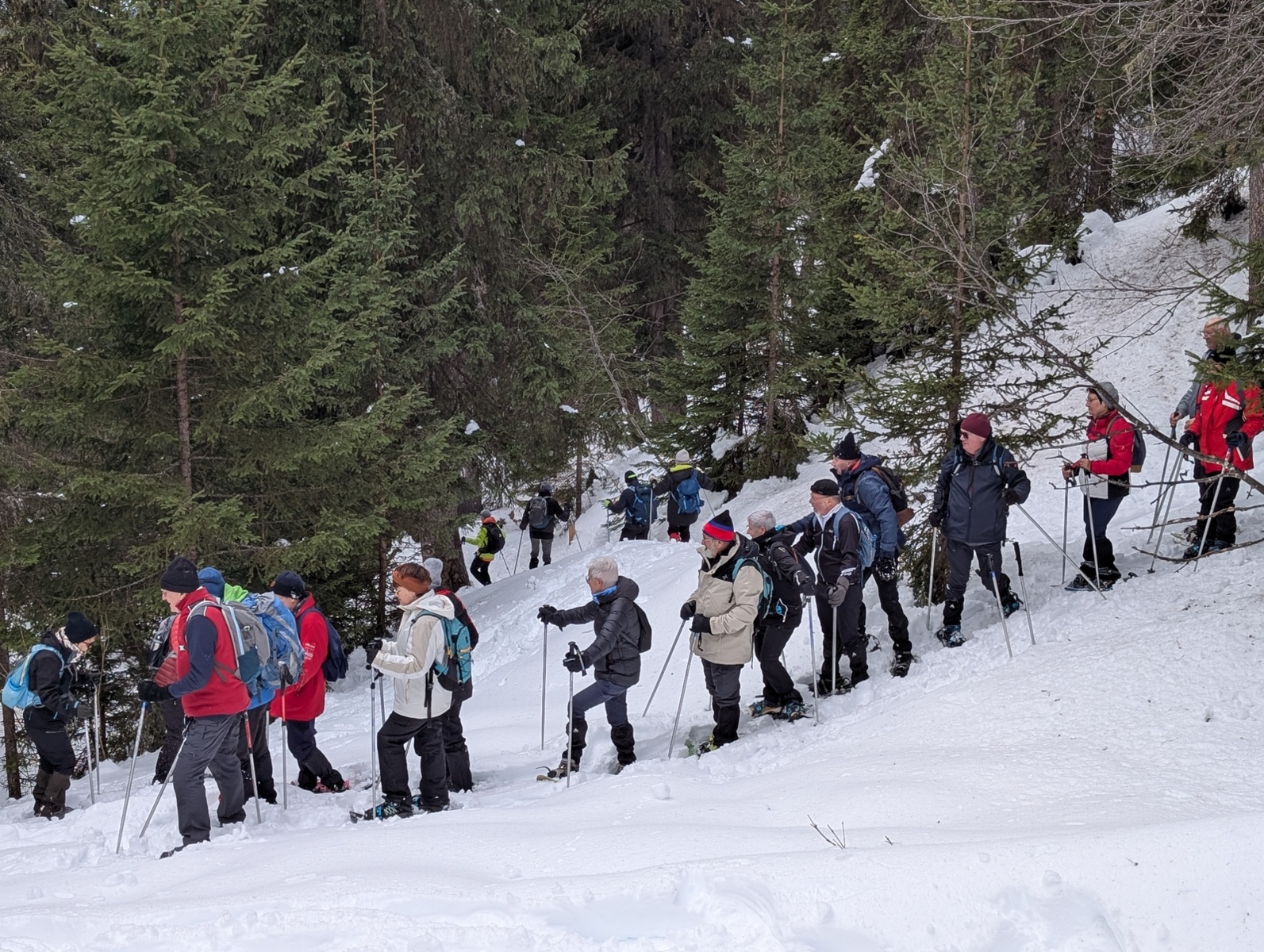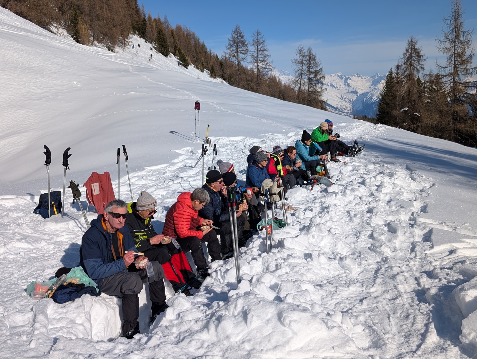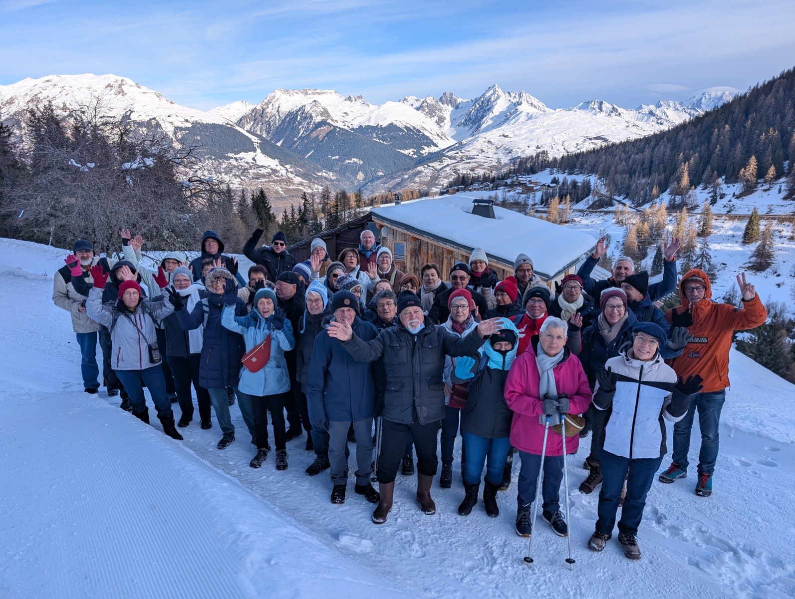 Durant tout le séjour, le temps ensoleillé et les conditions d’enneigement idéales ont permis de randonner en raquettes dans le bois des Fornettes, de longer le petit ruisselet du Bief Bovet et d’emprunter le sentier de Montgésin. En récompense, de magnifiques points de vue s’offraient à nous sur les massifs de la Lauzière, du Beaufortain, de la Vanoise et du Mont Blanc.