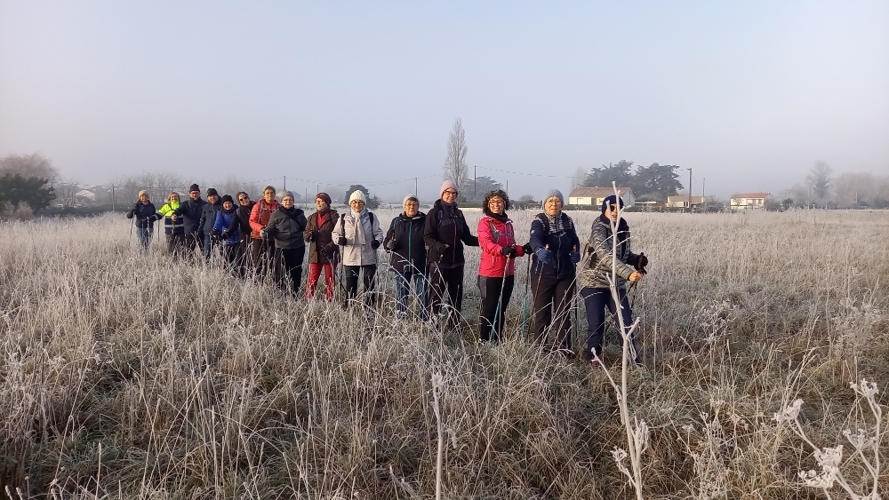Photos de la marche nordique du samedi 3 janvier, sous la brume hivernale (-3°C)