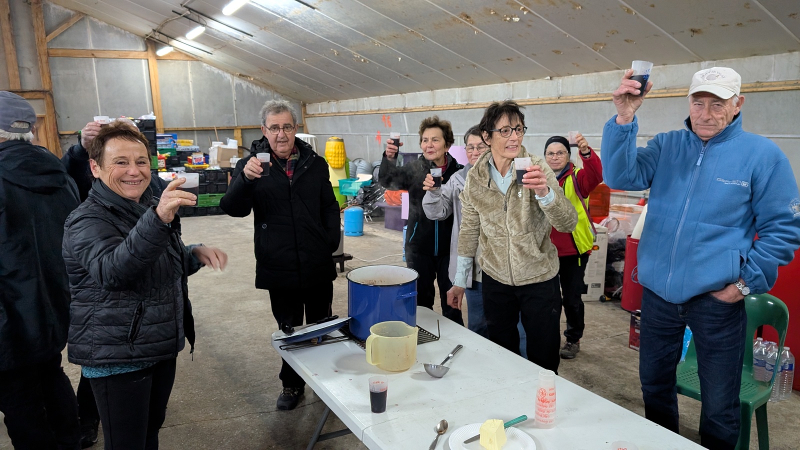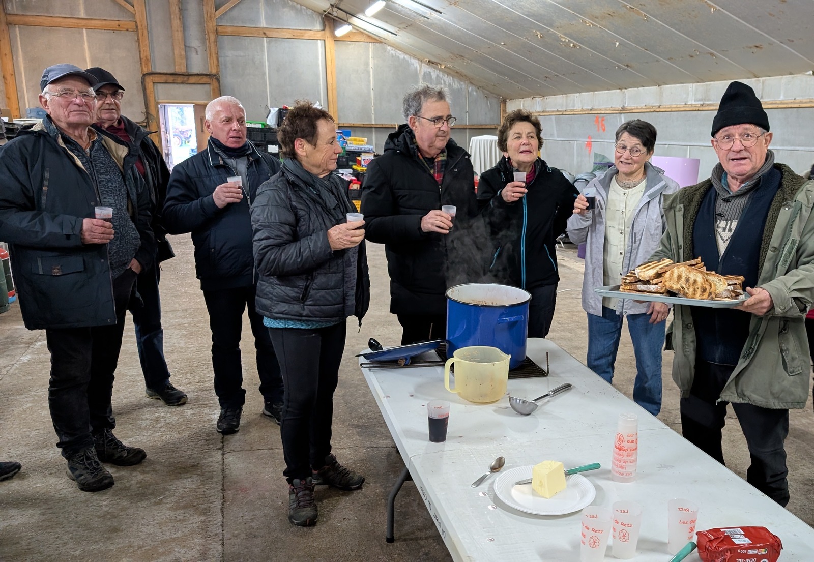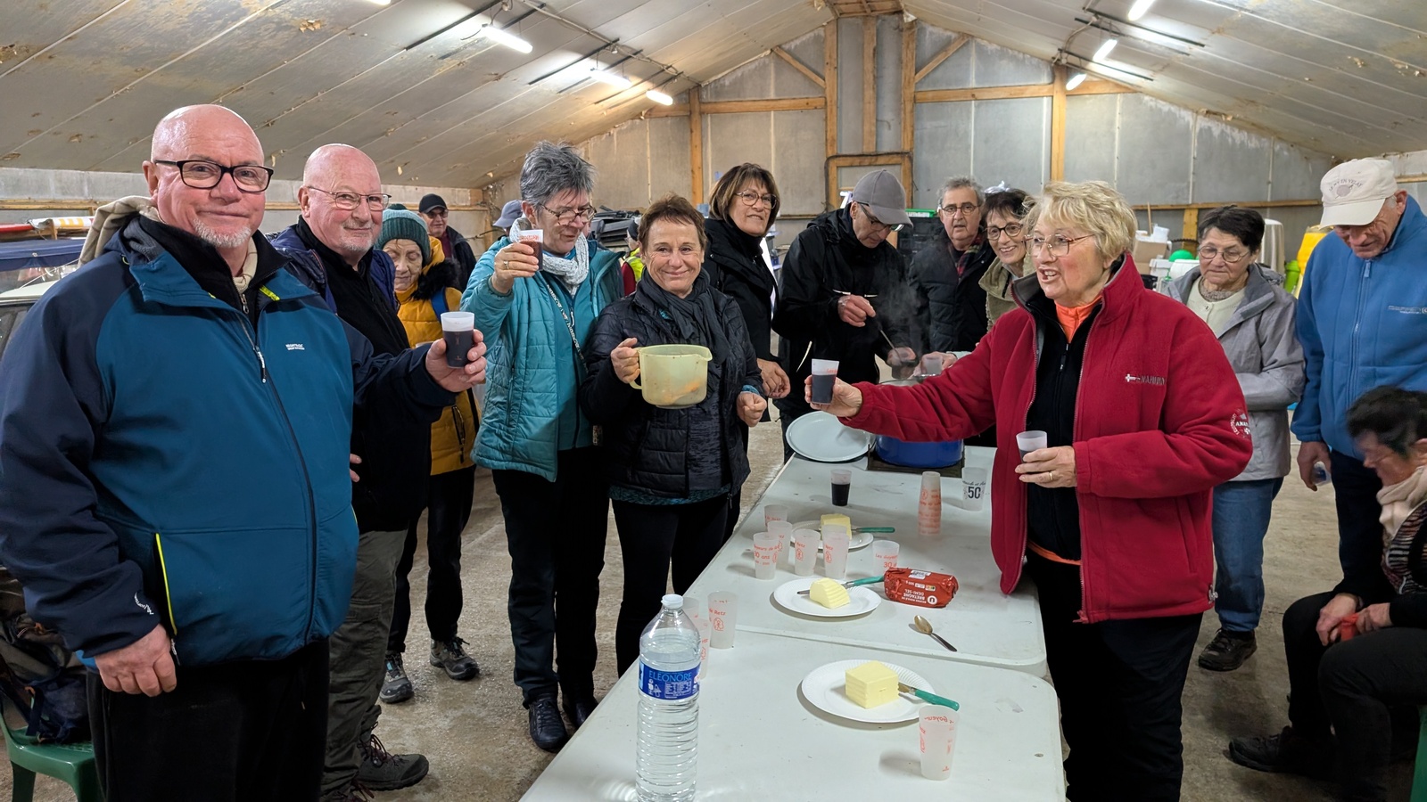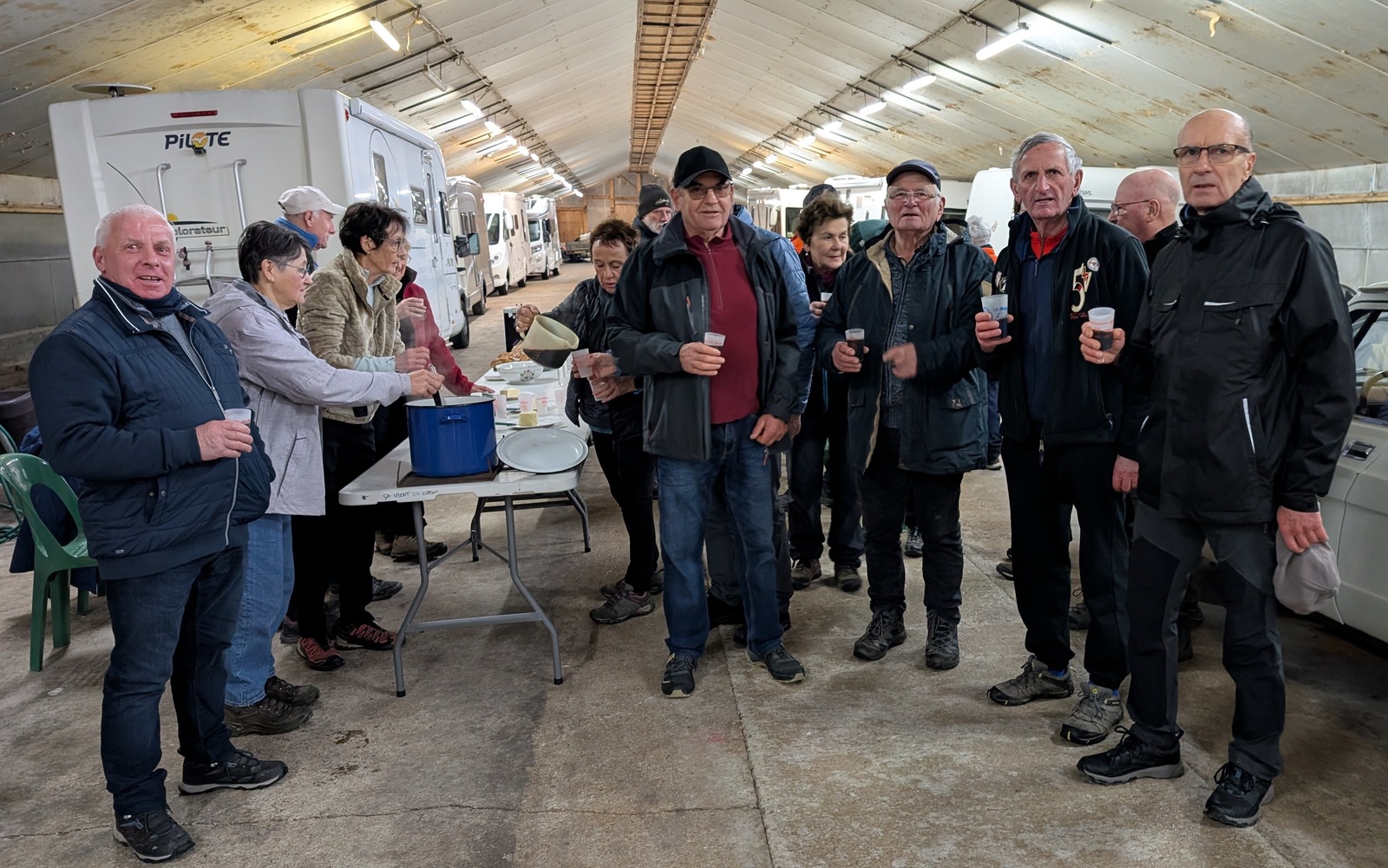A l’arrivée, un vin chaud accompagné de grillées mogettes réchauffait les randonneurs qui s’adonnaient comme d’habitude à quelques bons souvenirs.